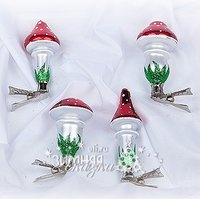Фабрика Елочка Набор стеклянных елочных игрушек Мухоморы, 4 шт, клипса С 1593