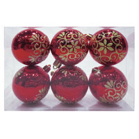 Шары елочные, набор 6 шт., пластик, диаметр 6 см, с рисунком глиттером, цвет красный (глянец), 59591