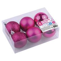 Шары елочные золотая сказка, набор 6 шт., пластик, 8 см, фуксия (глянец, матовый, глиттер), 590878