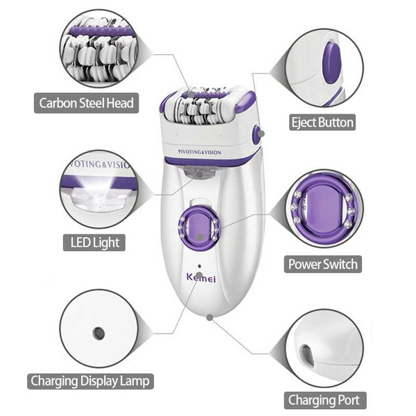 Эпилятор EN-739, 3 в 1, 3 Вт, АКБ, 3 насадки, фиолетовый