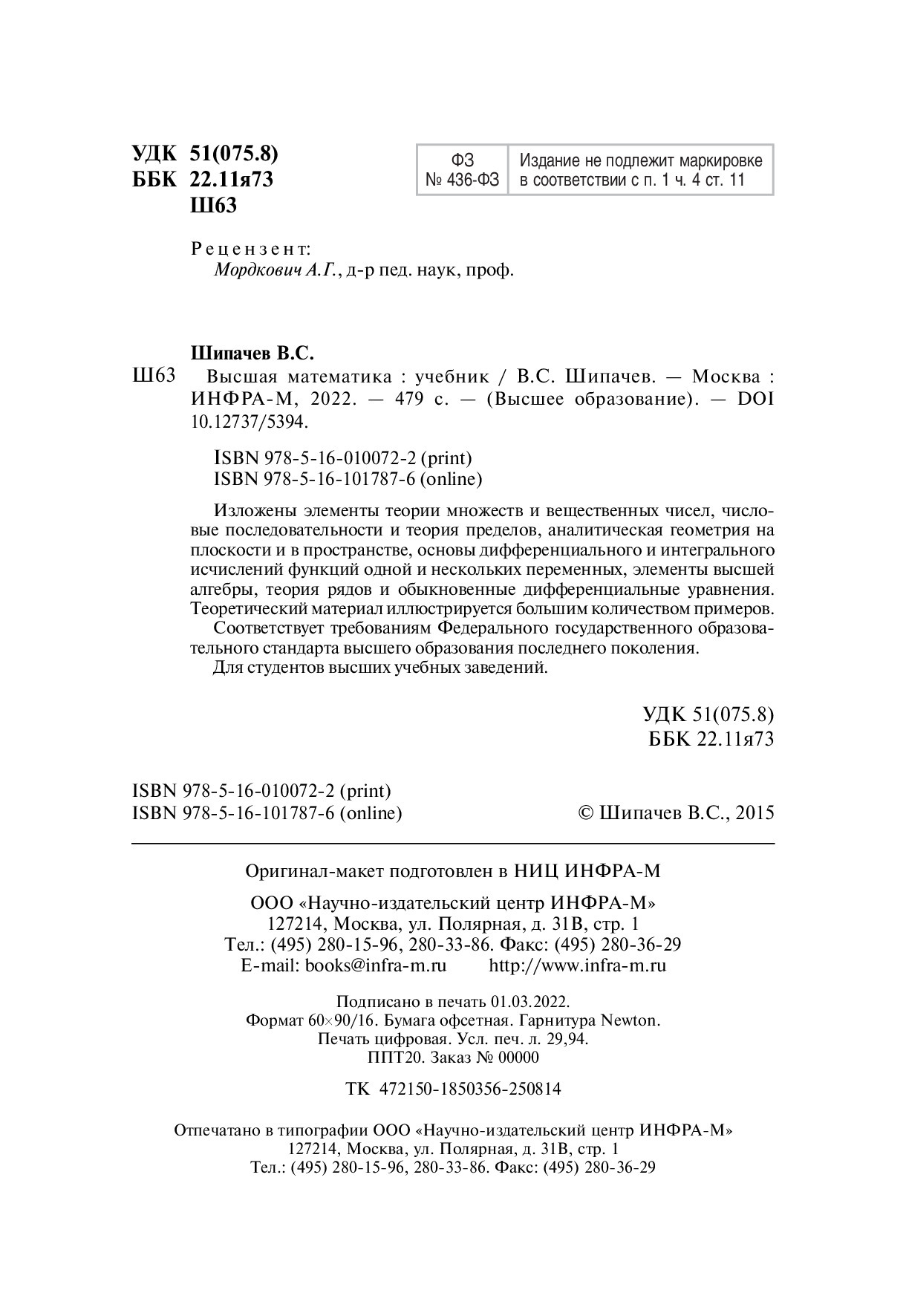 Высшая математика. Учебник. Студентам ВУЗов | Шипачев Виктор Семенович