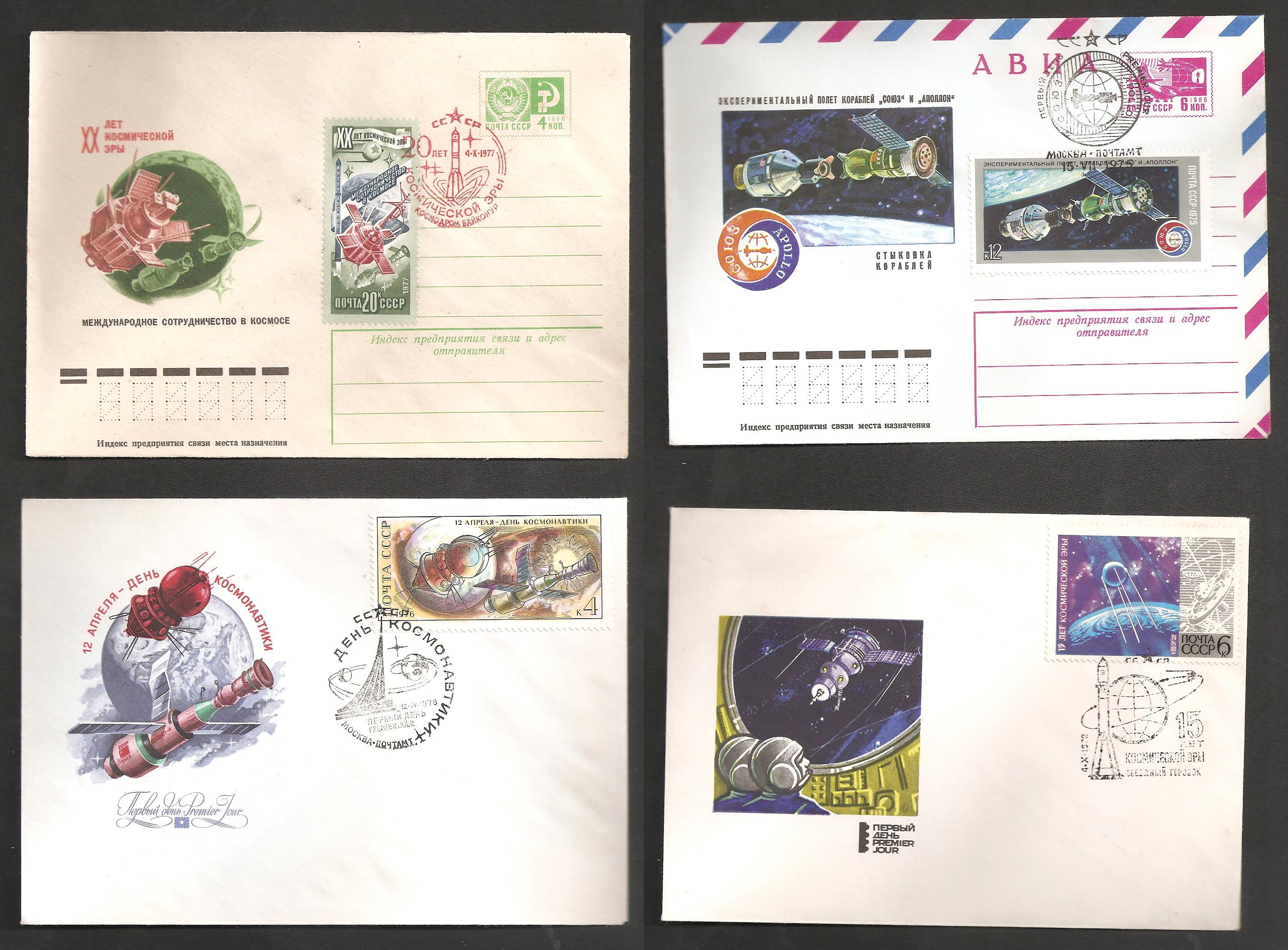 Набор почтовых коллекционных конвертов 4 шт. - АВИА и ПЕРВЫЙ ДЕНЬ - "КОСМОС" со спецгашением СССР