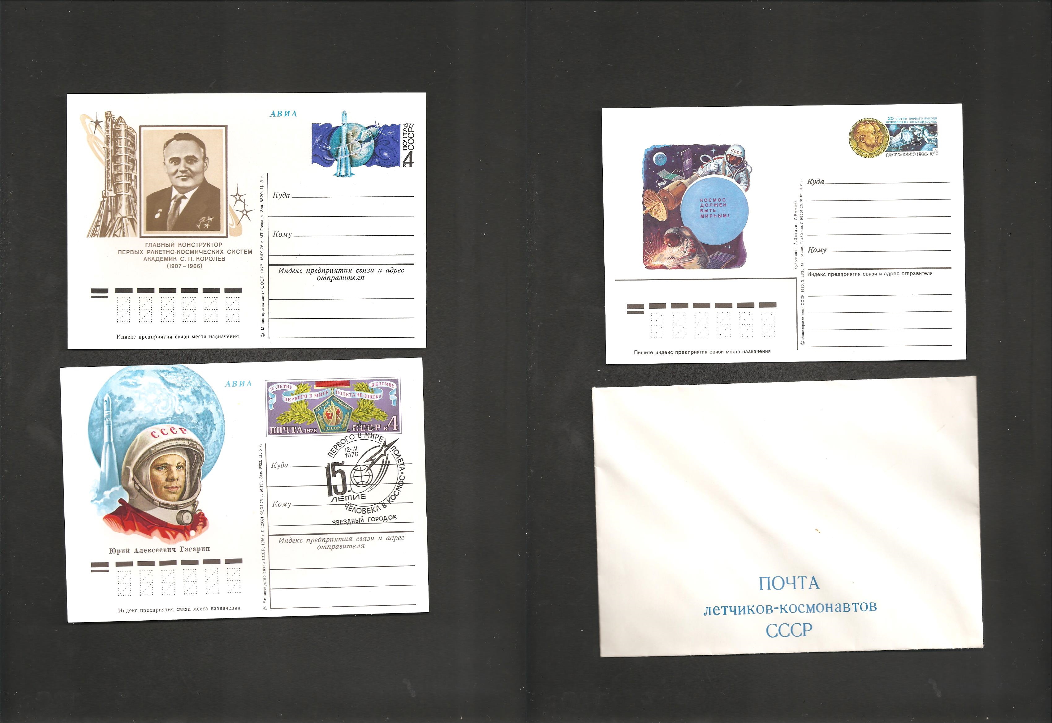 Почтовые карточки 3шт. "КОСМОС"+ 1 конверт "ПОЧТА летчиков-космонавтов СССР"