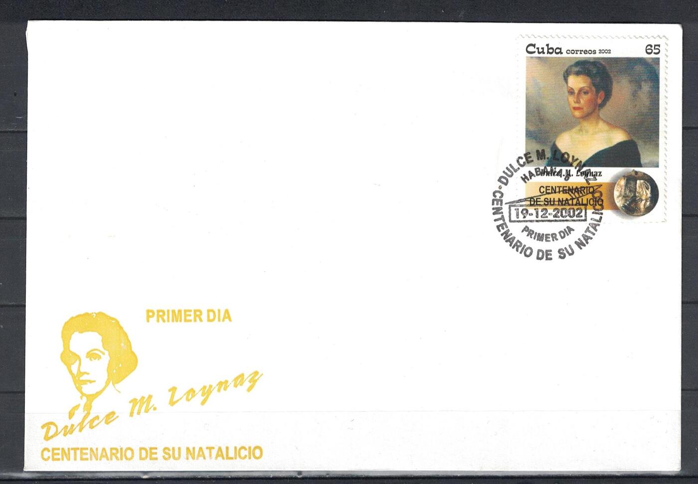 Конверт первого дня (КПД) Куба 2002г. "100 лет со дня рождения Дульсе М. Лойназ" Знаменитые женщины