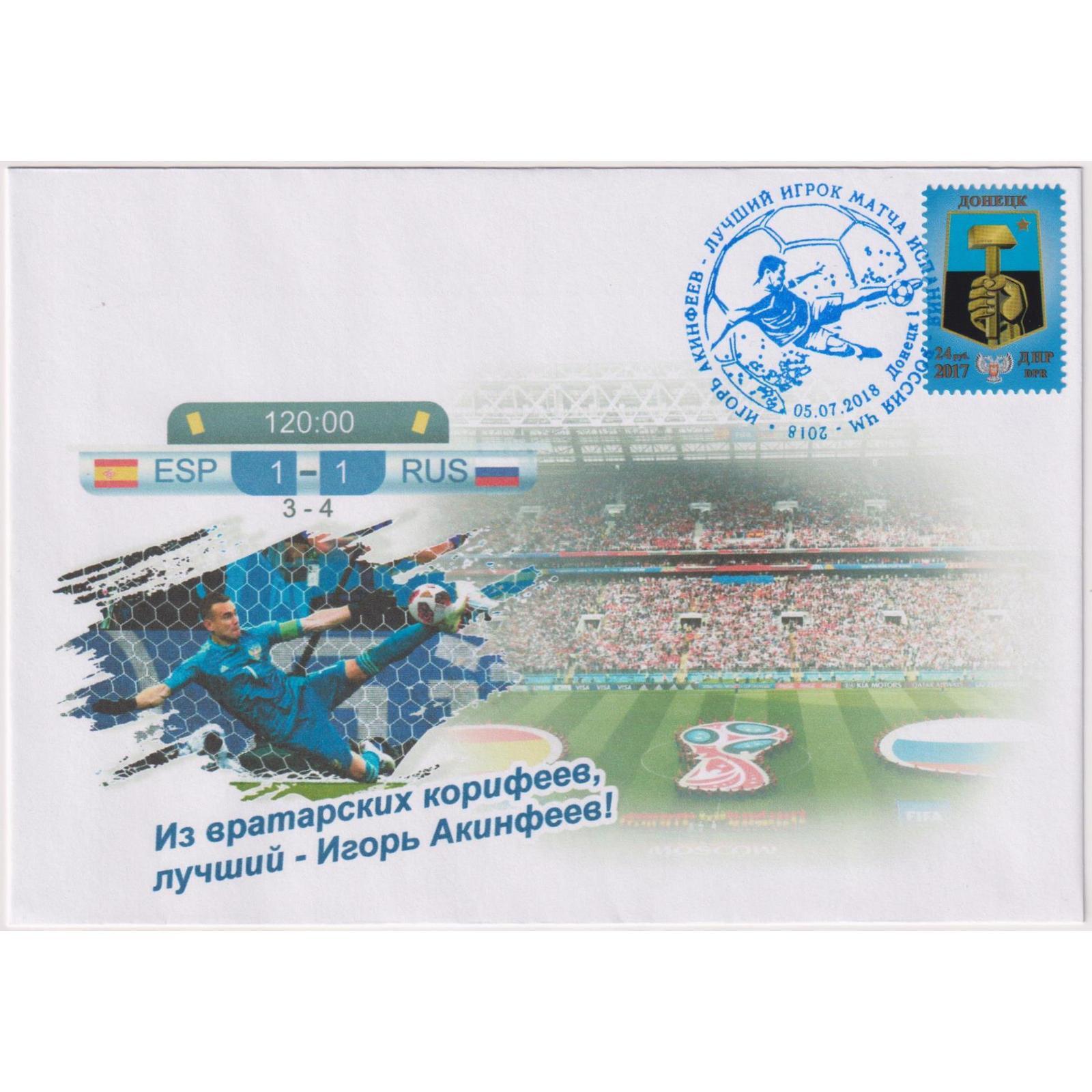 Конверт первого дня (КПД) ДНР 2018г. "Из вратарских корифеев лучший - Игорь Акинфеев" Спорт, Футбол