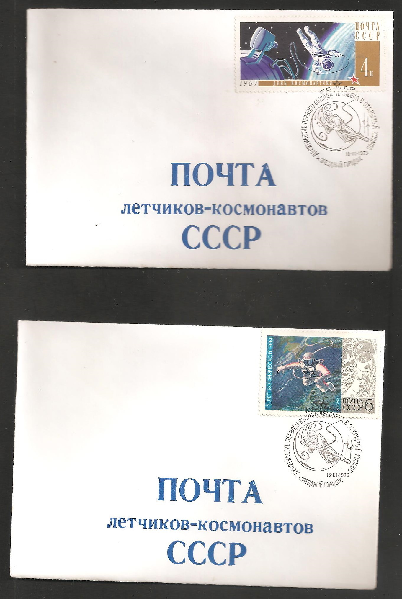 Набор из 2-х конвертов "Почта летчиков-космонавтов СССР" - 18.03.1975 год. - (День космонавтики).