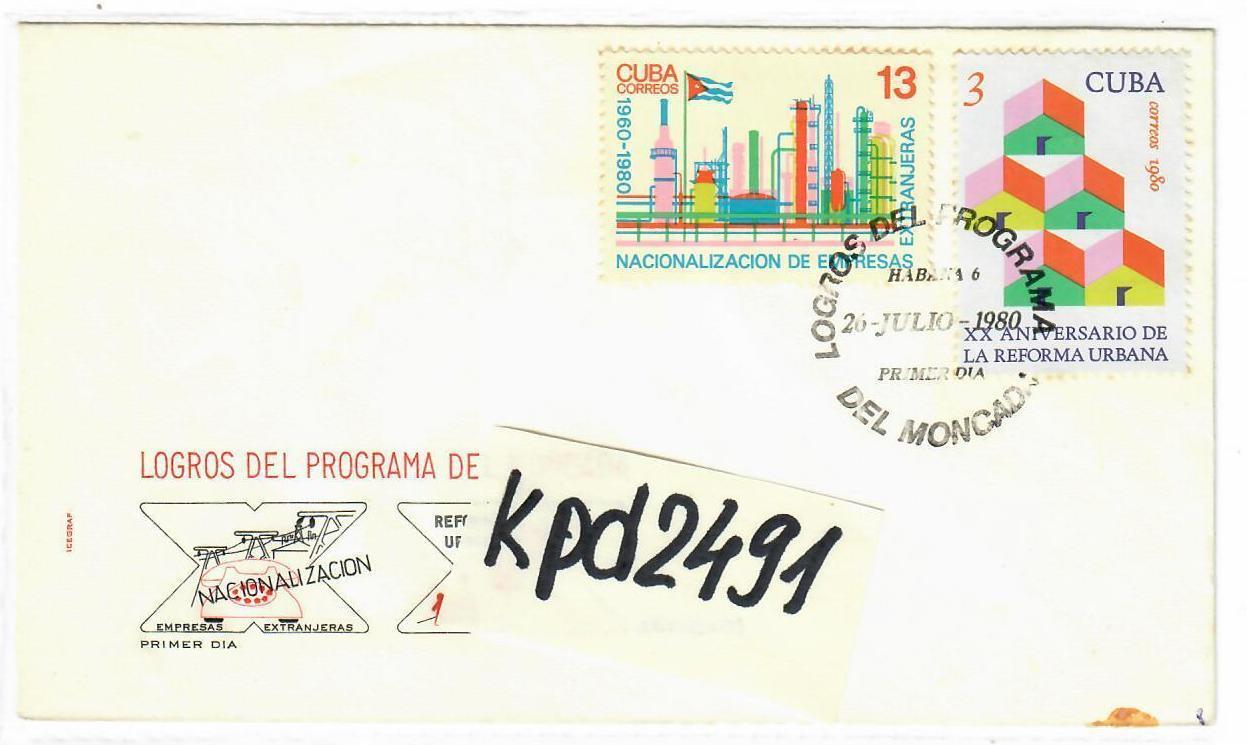 Конверт первого дня (КПД) Куба 1980г. "Программа "Монкада"" Промышленность, Нефть