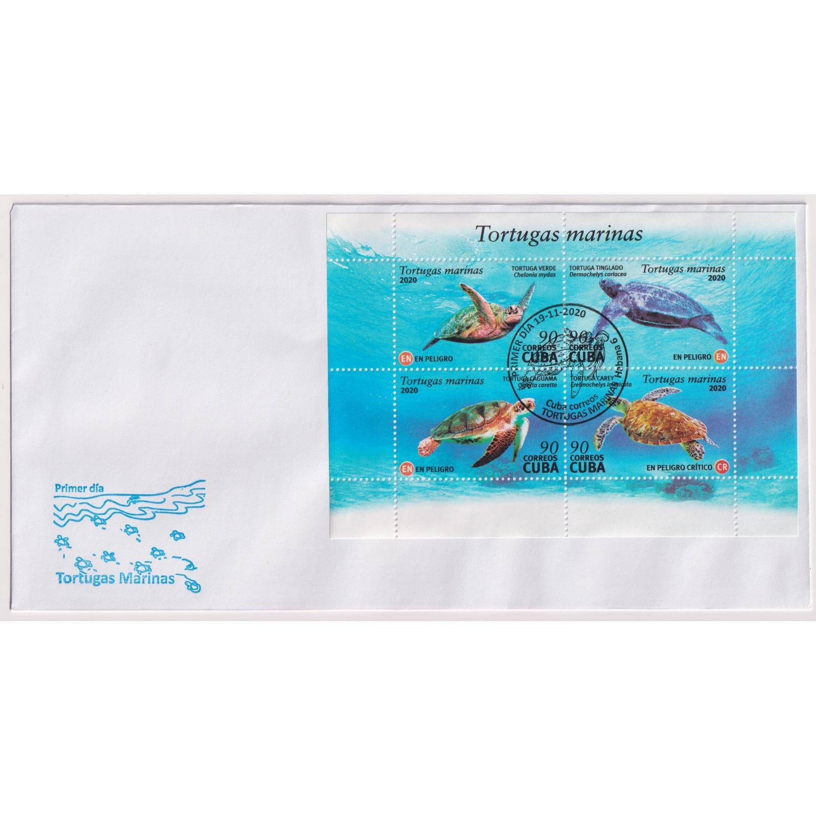Конверт первого дня (КПД) Куба 2020г. "Морские черепахи" Черепахи, Морские черепахи