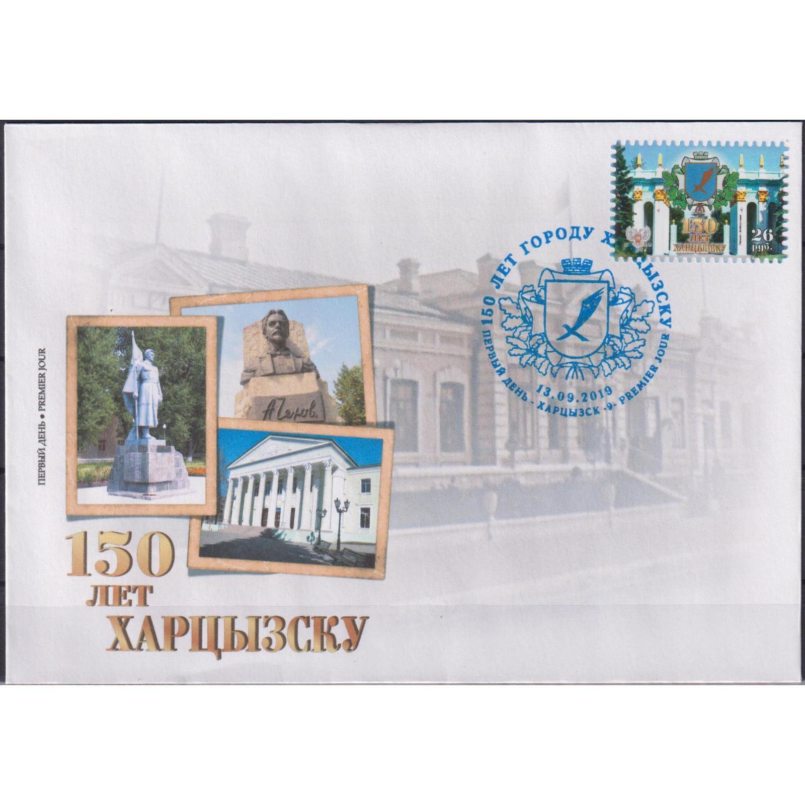 Конверт первого дня (КПД) ДНР 2017г. "150 лет Харцызску" Гербы