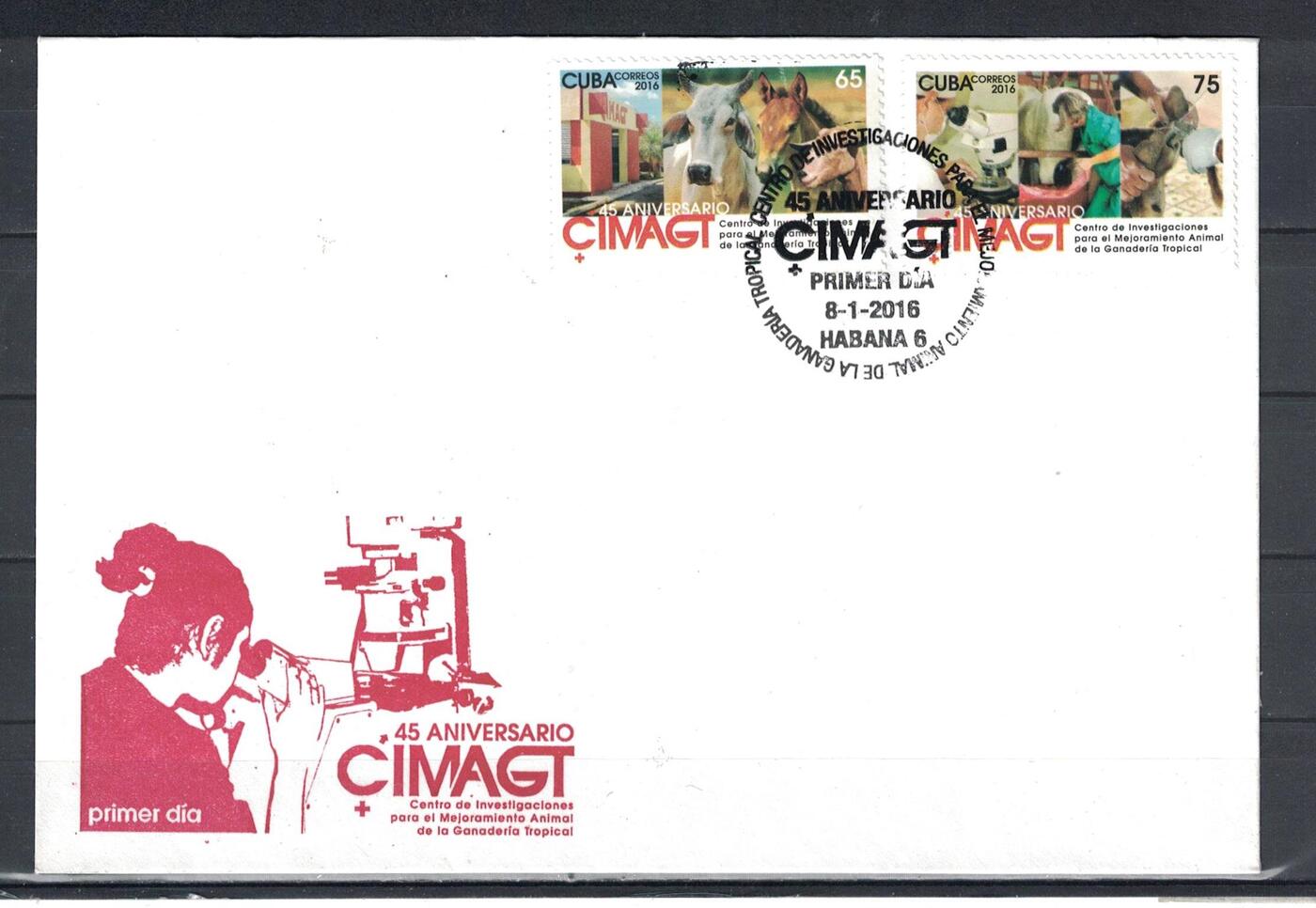 Конверт первого дня (КПД) Куба 2016г. "45-летие CIMAGT" Сельское хозяйство, Коровы, Лошади, Скот