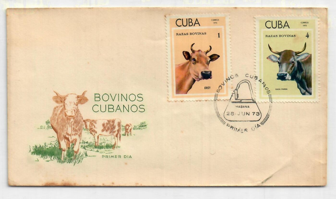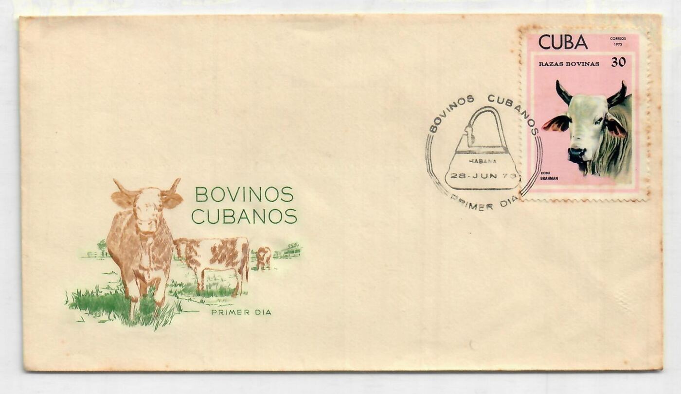Конверт первого дня (КПД) Куба 1973г. "Породы крупного рогатого скота" Коровы, Домашние животные