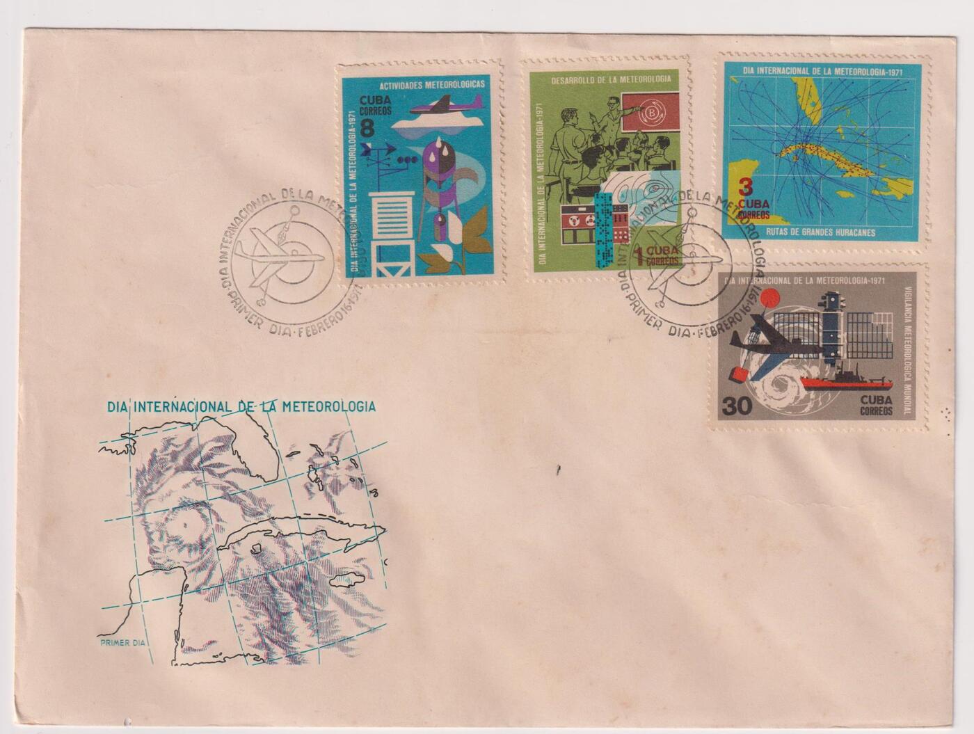 Конверт первого дня (КПД) Куба 1971г. "Всемирный метеорологический день" Метеорология
