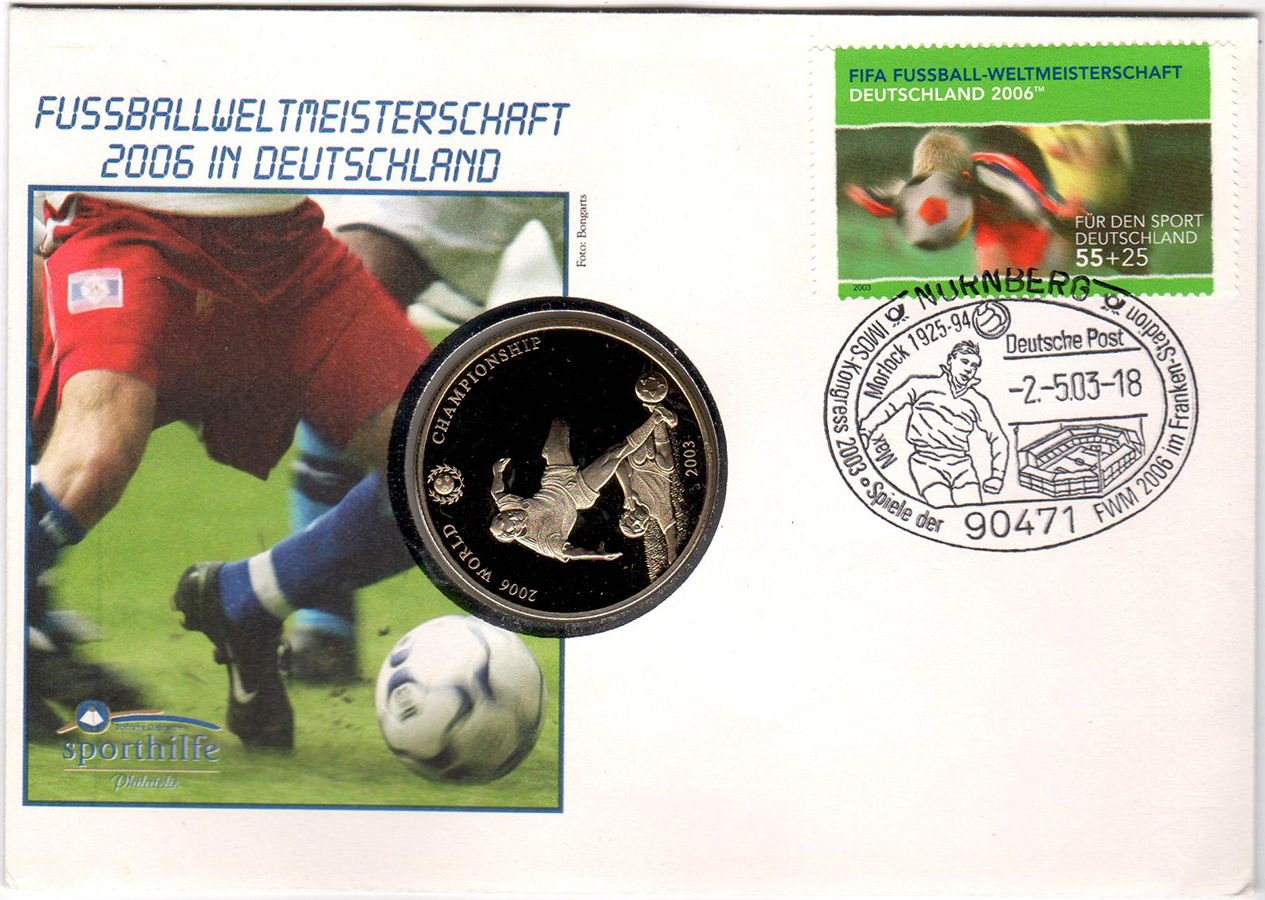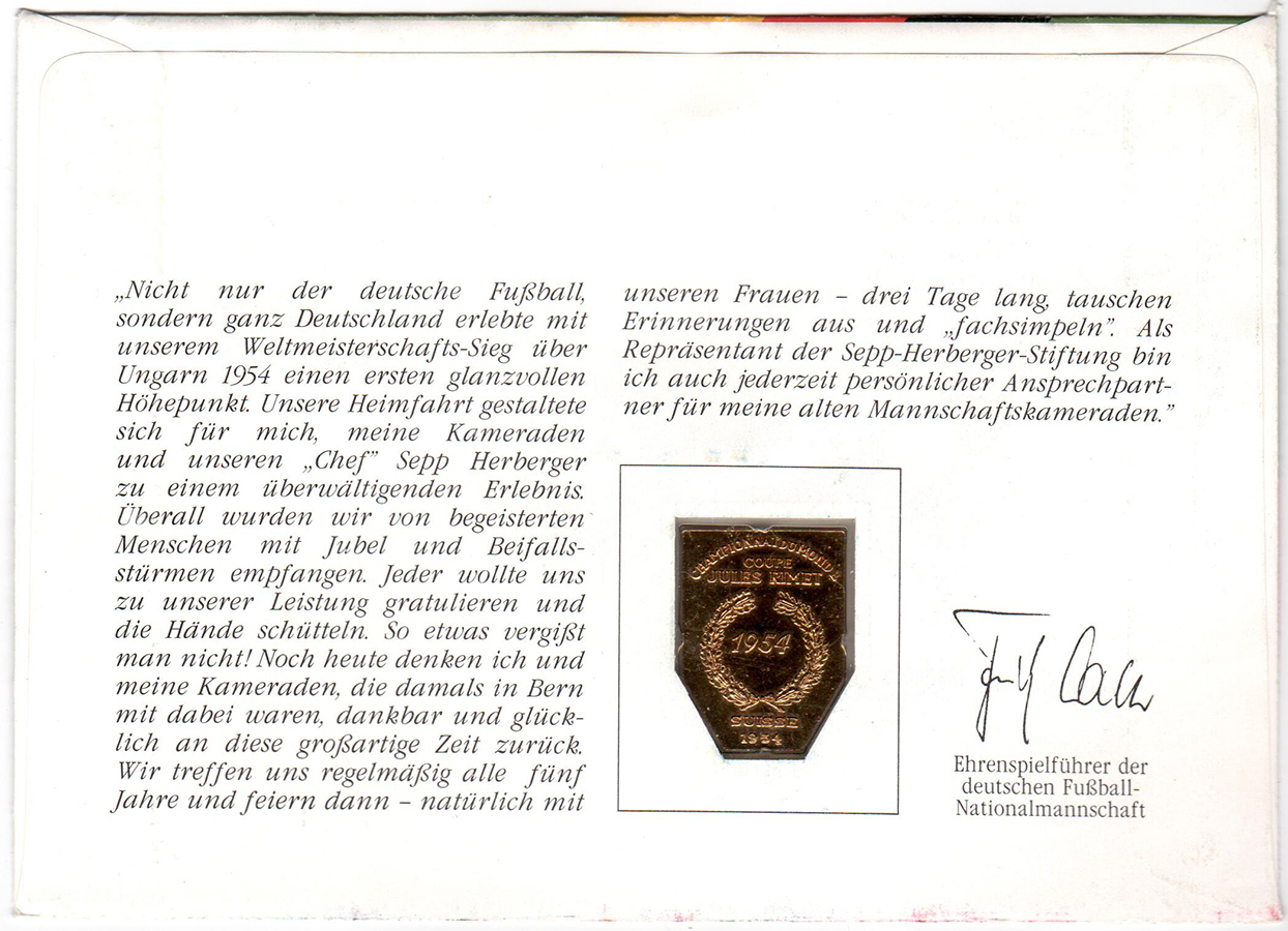 Конверт первого дня (КПД) Германия 1994 год с медалью. "Футбол ЧМ-94 США". С автографом