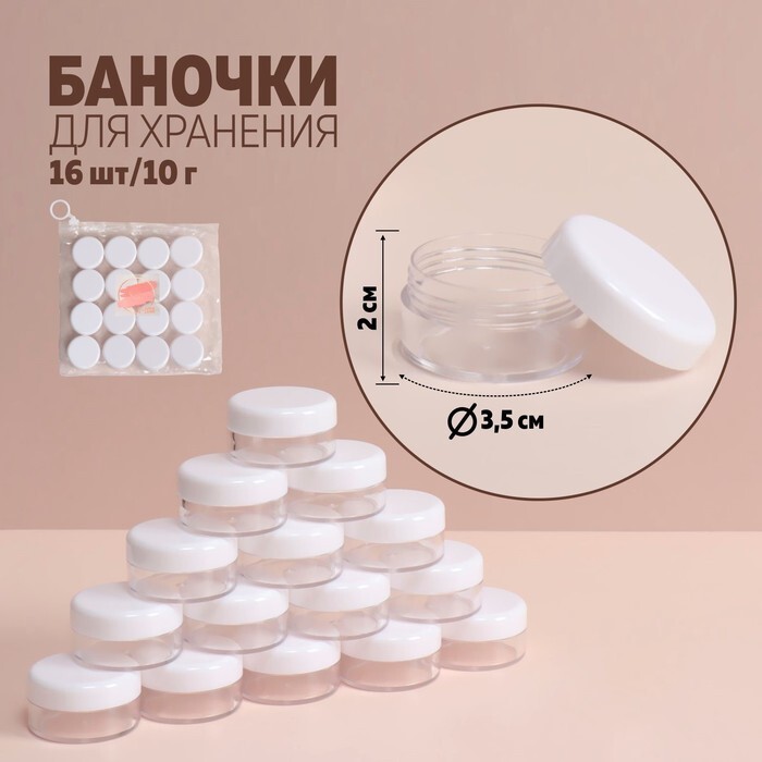 Баночки для хранения, 16 шт, 10 г, в чехле, цвет белый/прозрачный