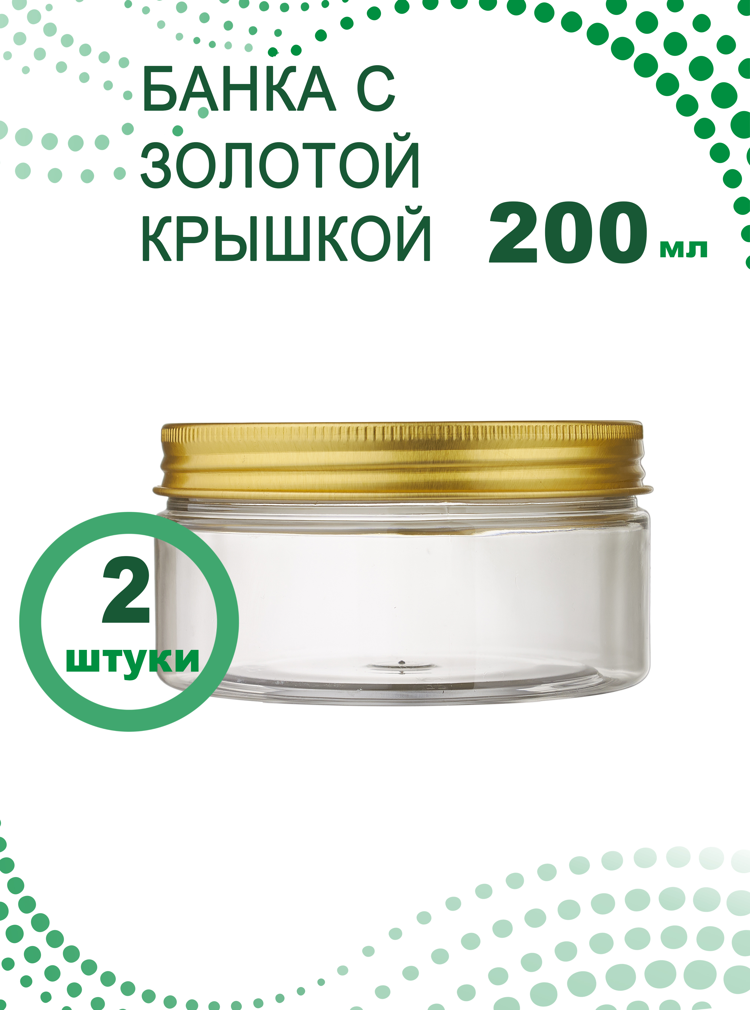 Банка прозрачная 200 мл с золотой крышкой, 2 шт.