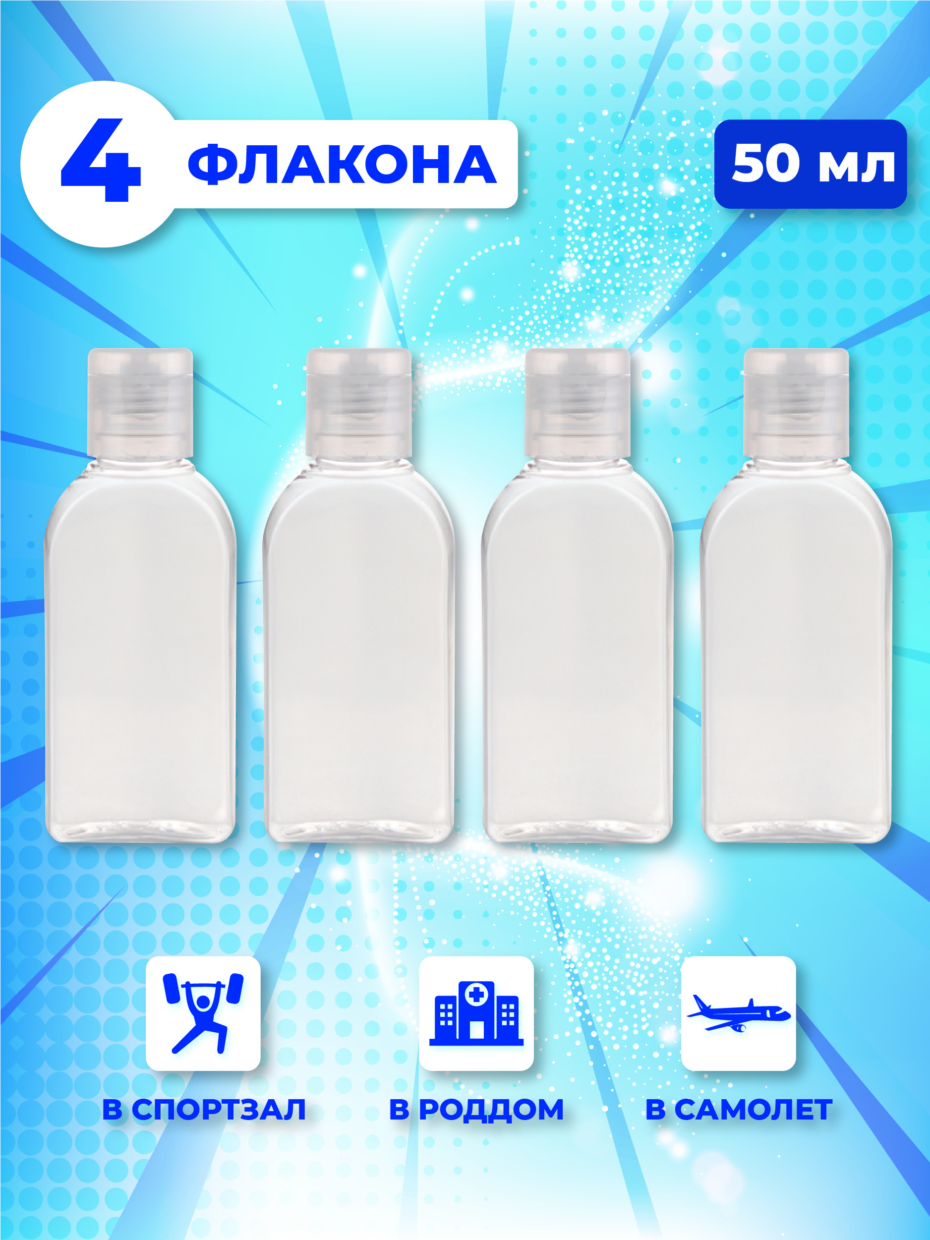 Набор дорожных флаконов 4 шт. по 50 мл / Набор баночек в роддом, больницу, спортзал, самолет