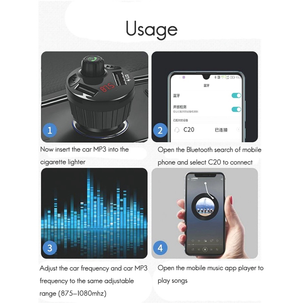 BC05 Автомобильный Bluetooth 5.0 FM-передатчик Handfree MP3-плеер USB-зарядное устройство
