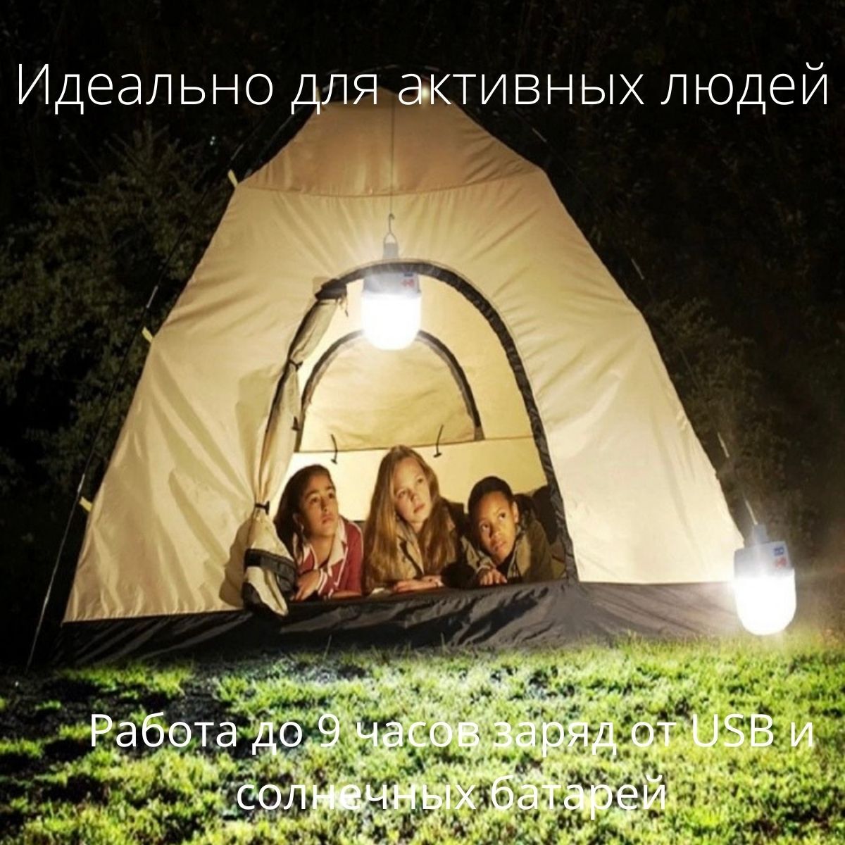 Фонарь кемпинговый подвесной/ на солнечных батареях/ с USB и аккумулятором
