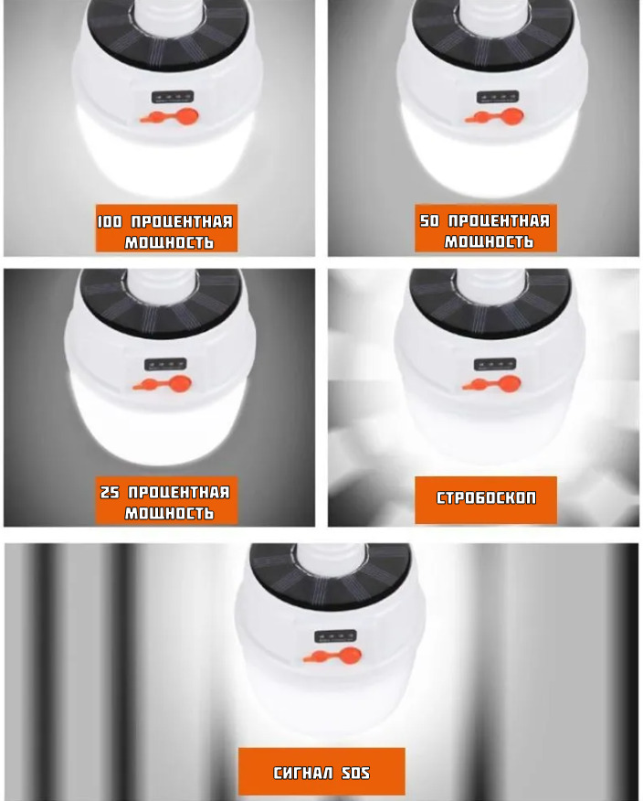 Фонарь кемпинговый на солнечной батарее подвесной, 5 режимов. мод. YD-1358