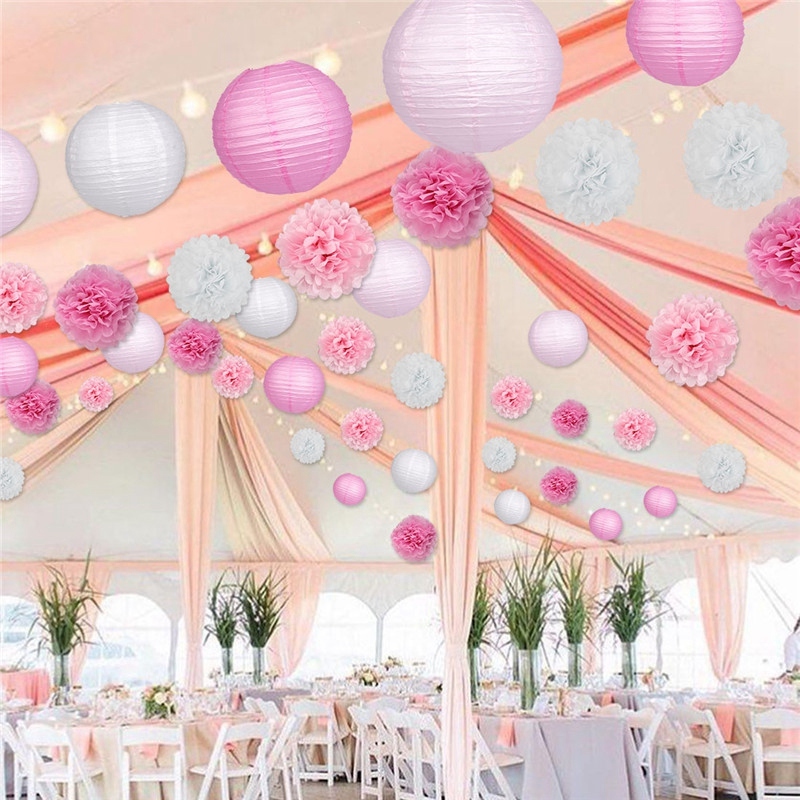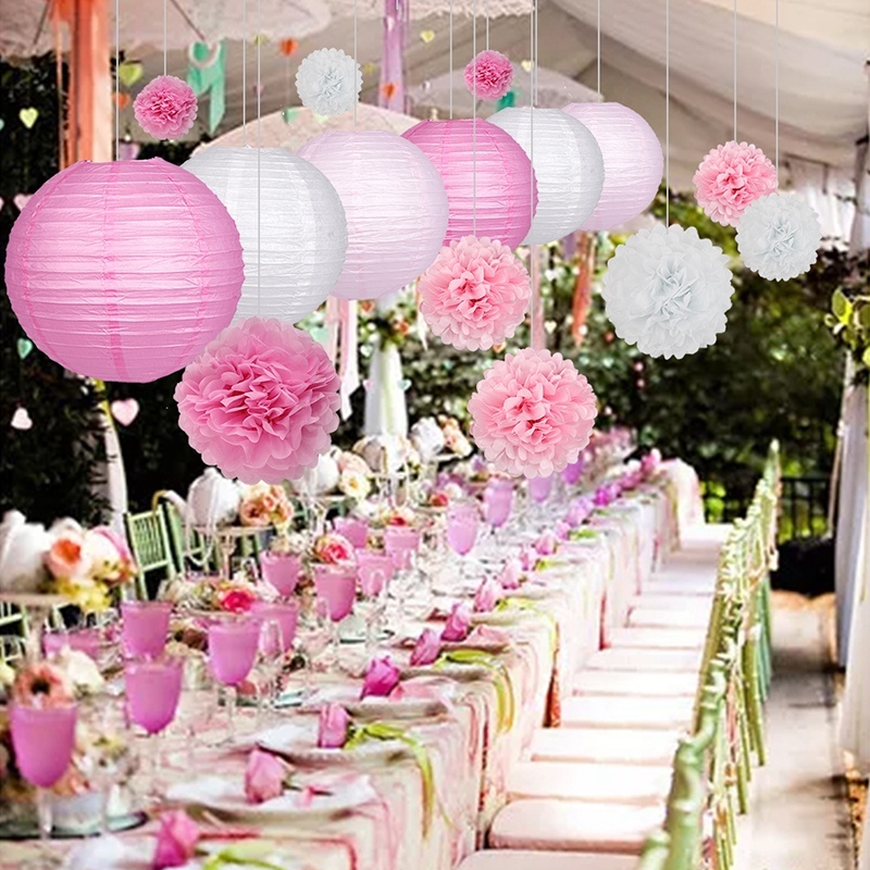 15шт украшения бумажный цветок мяч бумажные фонарики розовый фиолетовый
