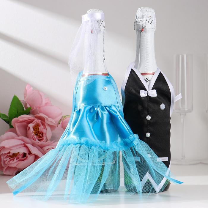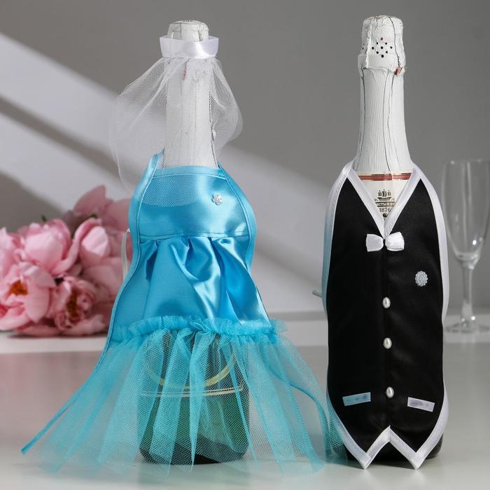 Украшение на шампанское "Свадебный вальс", бирюзовое