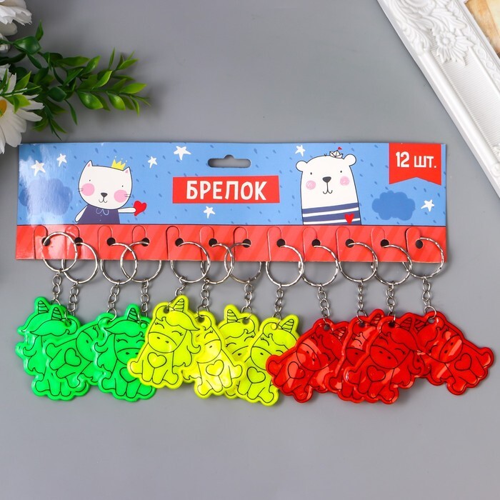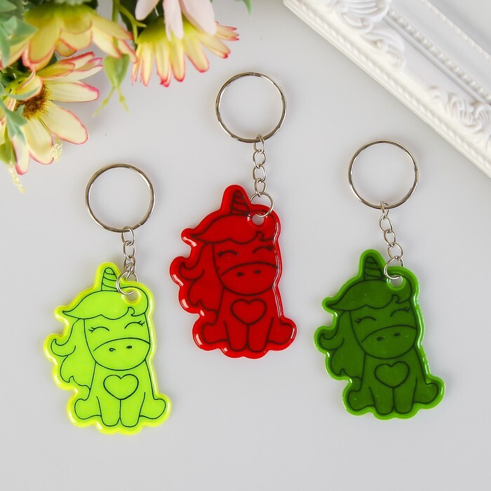 Брелок пластик светоотражающий "Единорожка с сердечком" МИКС 5,5х4 см