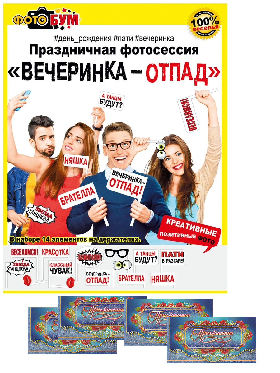 Набор для фотосессий "Вечеринка-отпад" + приглашения.