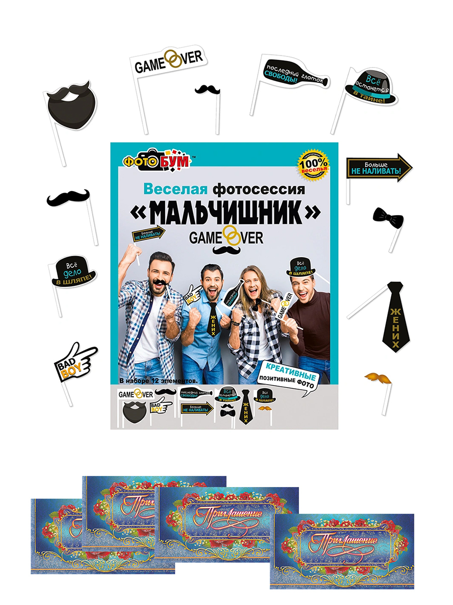 Набор для фотосессий "Мальчишник"+4 приглашения.