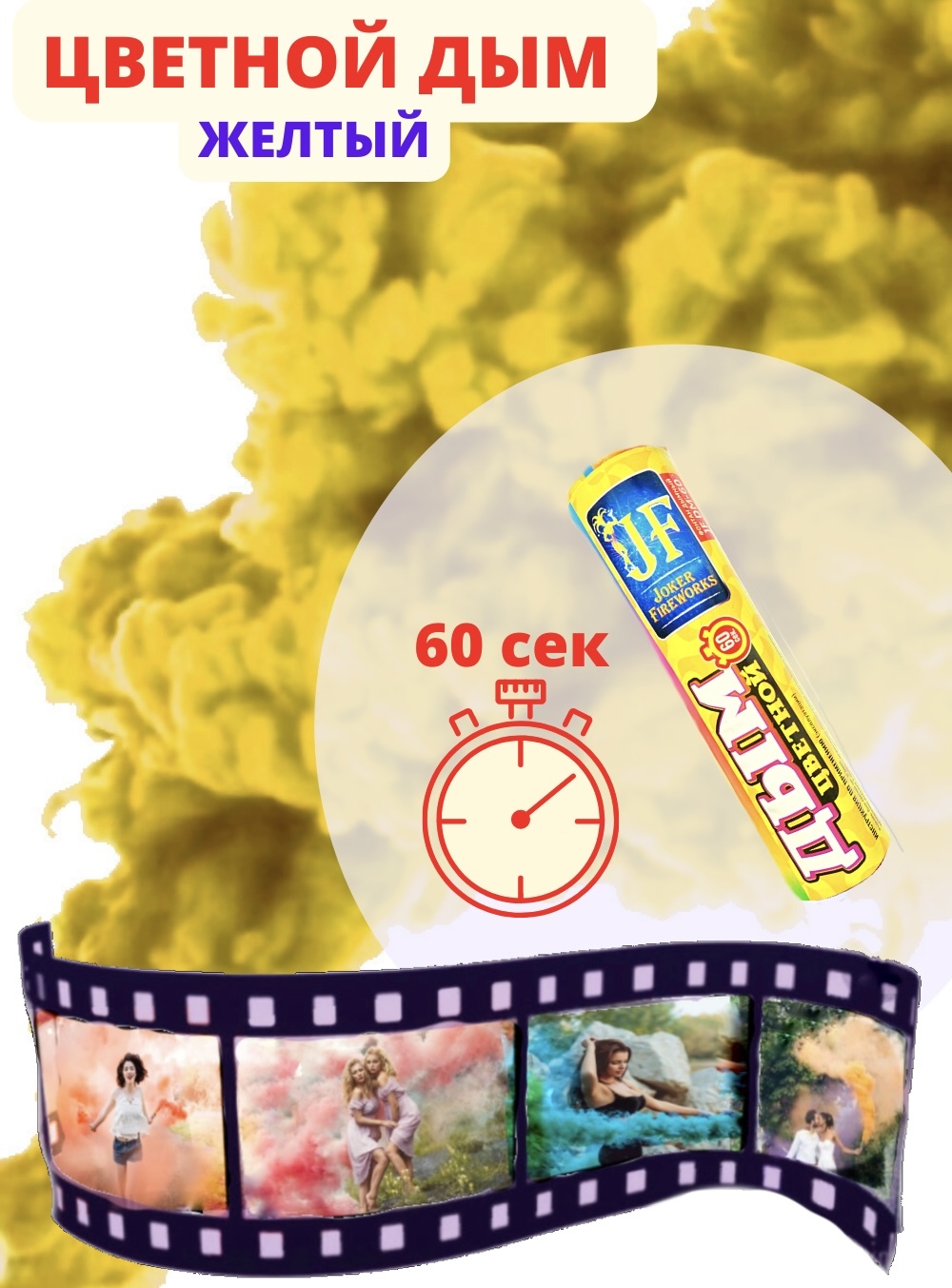 Цветной дым для фотосессии 60 сек желтый