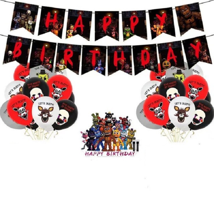 Набор для праздника "5 ночей Фредди" (24шт мал топпера, 1 больш. топпер, 15 флаж., 24 шшт шаров)