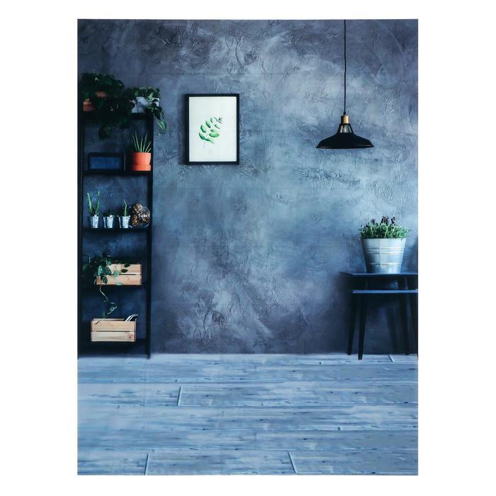 Фотофон винил интерьер "Оштукатуренная серая стена и растения" 150х200 см