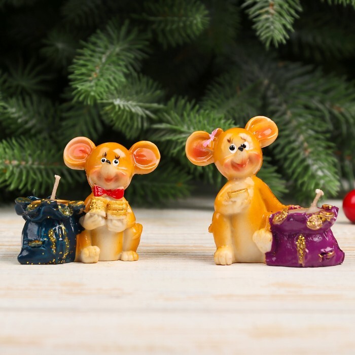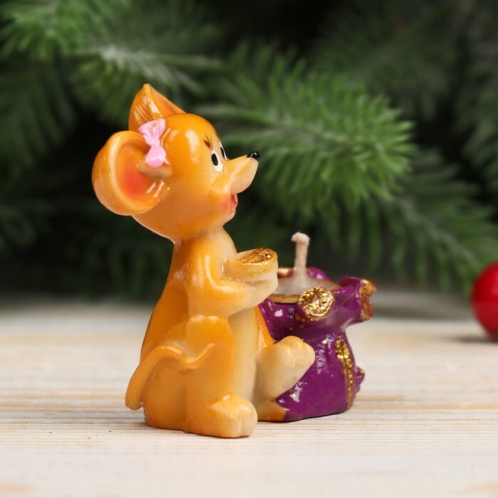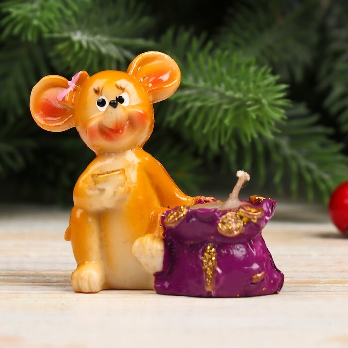 Сувенир полистоун подсвечник со свечой "Мышуля и мешок золотых монет" МИКС 4,8х6,5х2,5 см