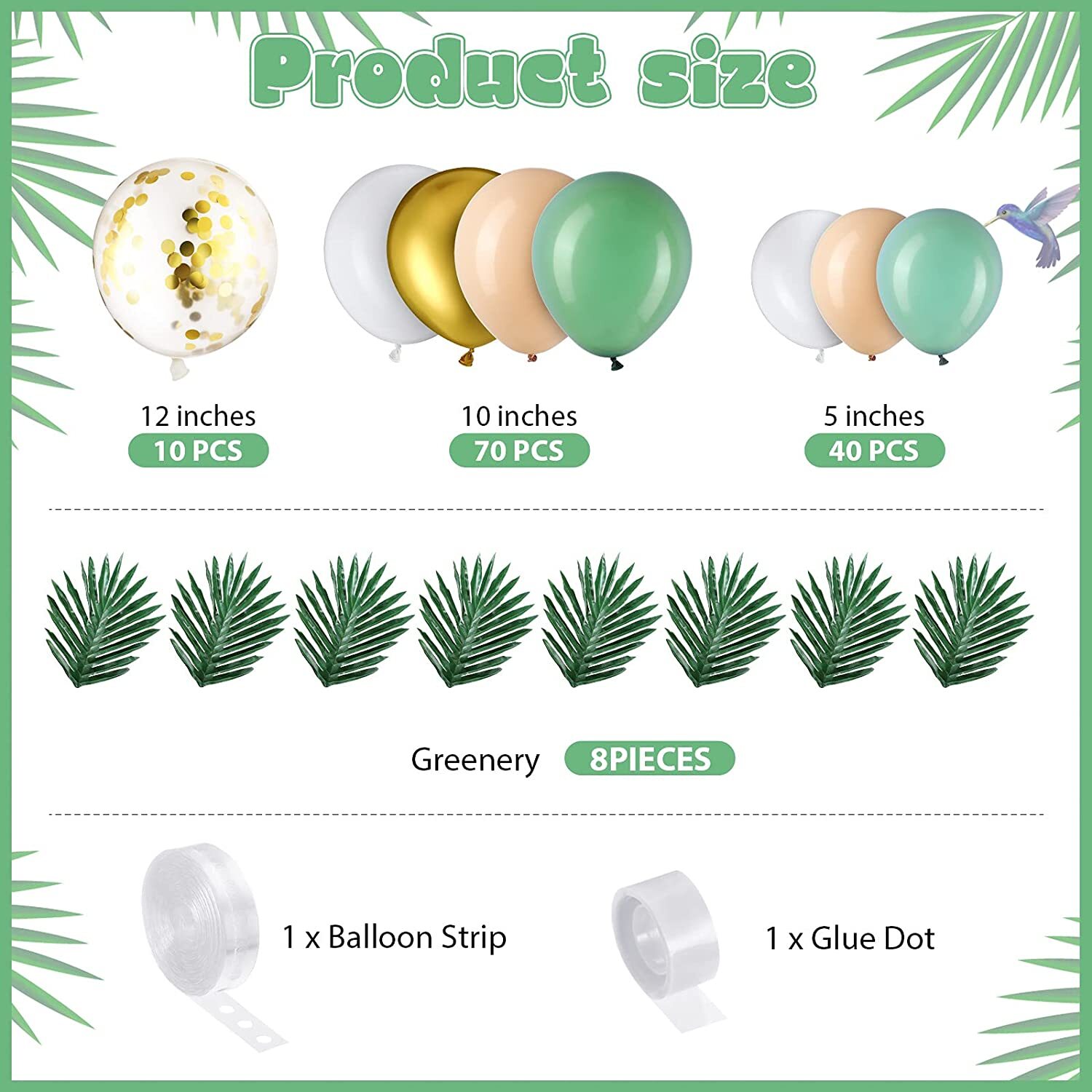 167шт джунгли сафари тематическая вечеринка поставки зеленые шары гирлянда комплект