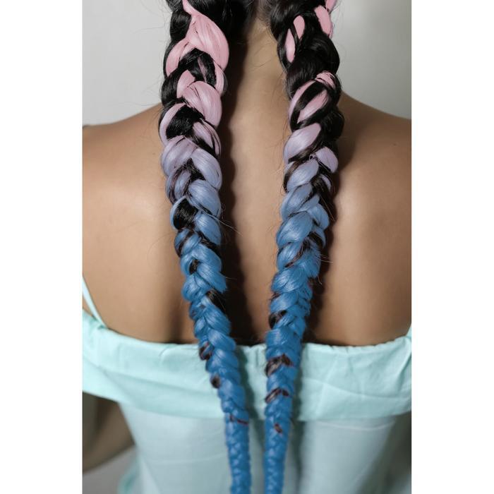 Канекалон трёхцветный, гофрированный, 60 см, 100 гр, цвет чёрный/светло-розовый/аквамариновый(CY2)