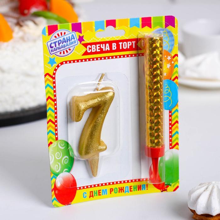 Свеча для торта цифра "Овал + фонтан" золотая "7"