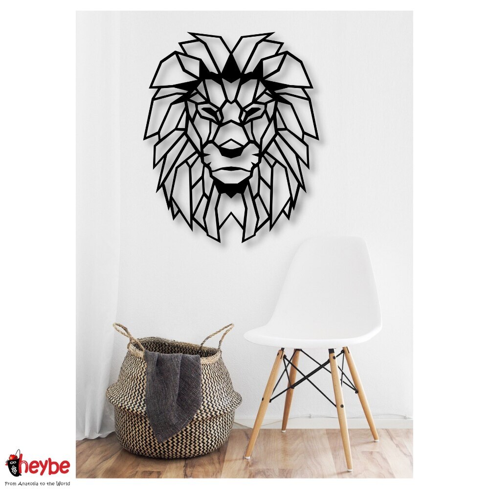 Деревянный Лев Украшение Стены Черный Король Леса Модерн 3D (Черный)