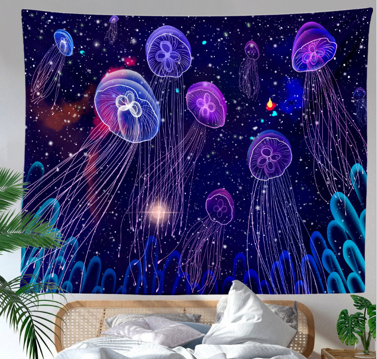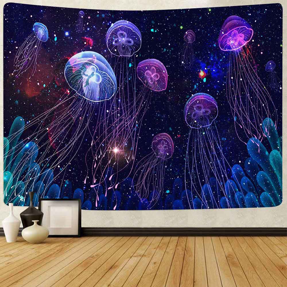 Гобелен Психоделические морские медузы художественные(голубой)