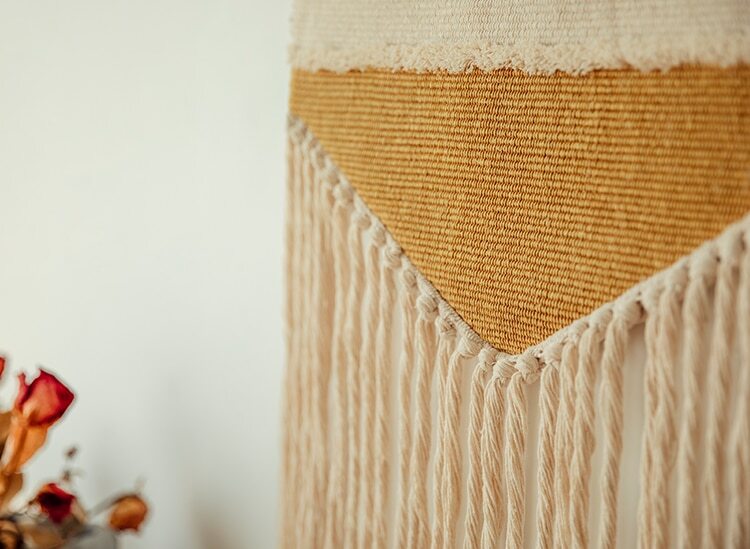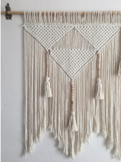 Стеллаж для гобеленов из макраме в стиле бохо ручной тканый(белый)