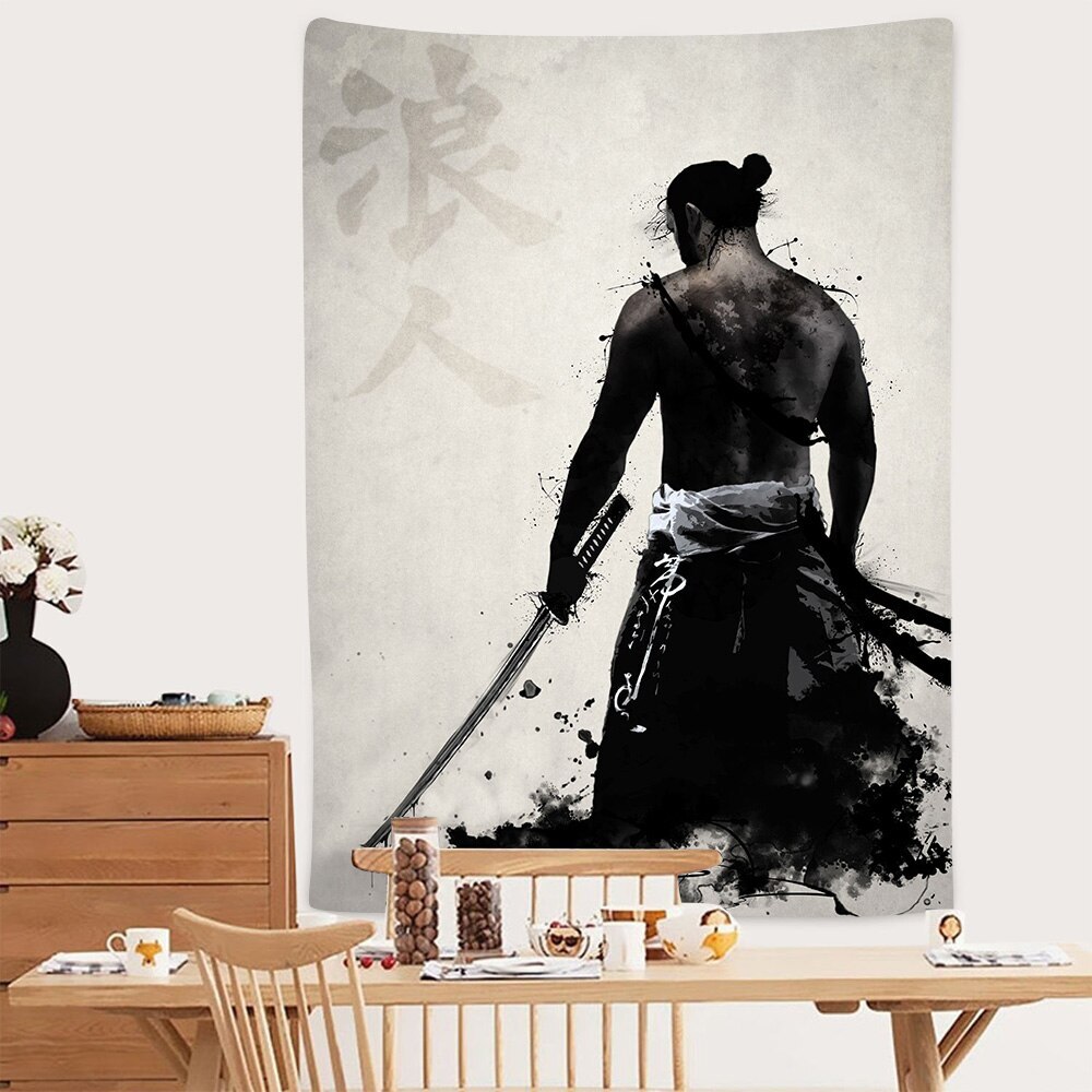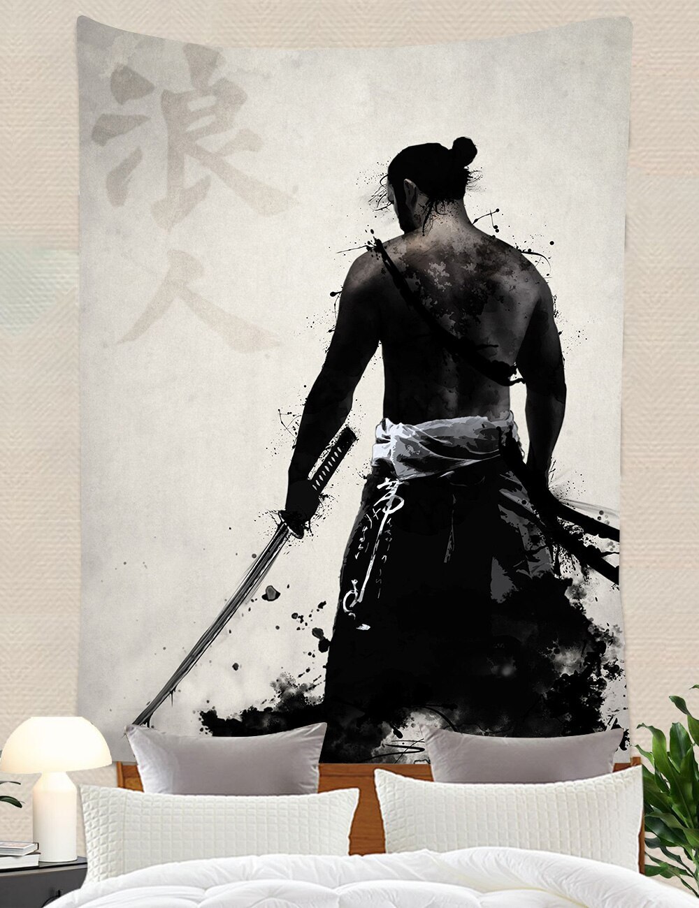 Японский самурай Ронин Мечник Чернильный гобелен Современные стены Фотопечать Гостиная черный