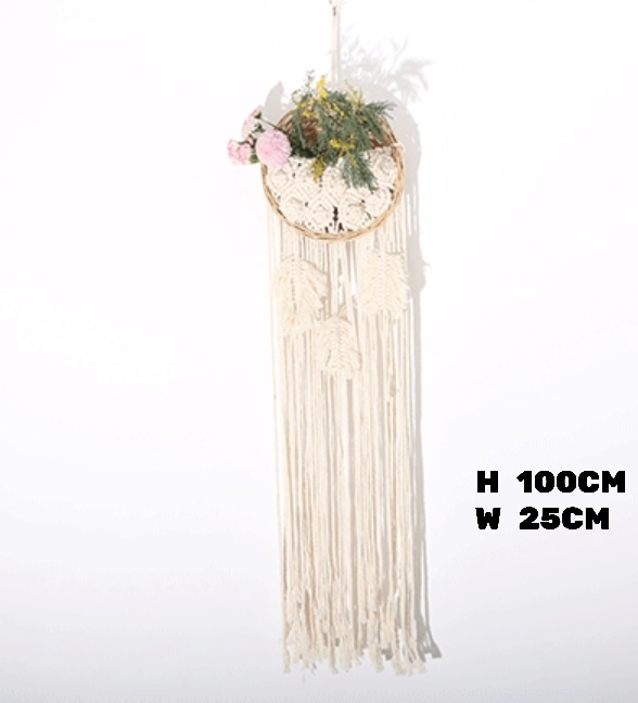 25 * 100 см кружева макраме настенный тканый цветочный горшок из(белый)