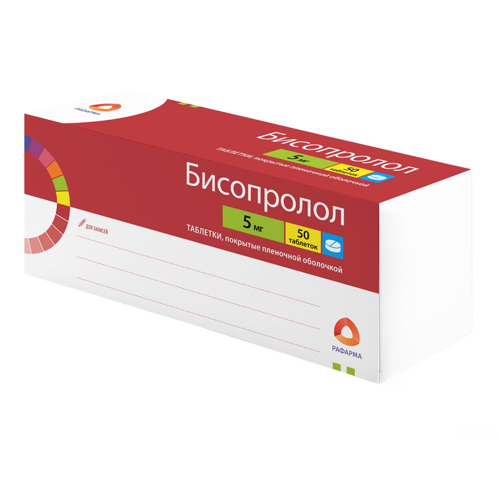 Бисопролол 5 мг 50 шт. таблетки, покрытые пленочной оболочкой