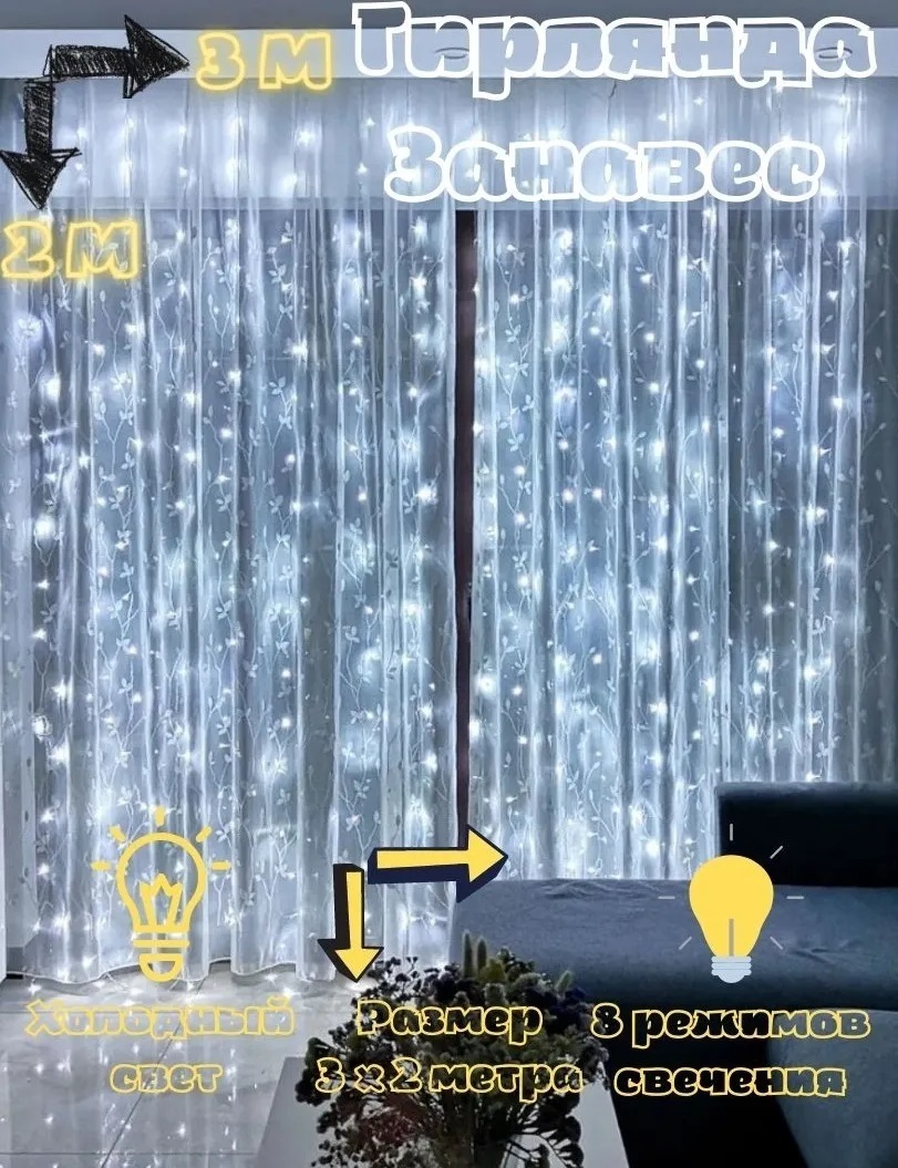 Электрогирлянда интерьерная Штора Светодиодная 300 ламп, 3 м