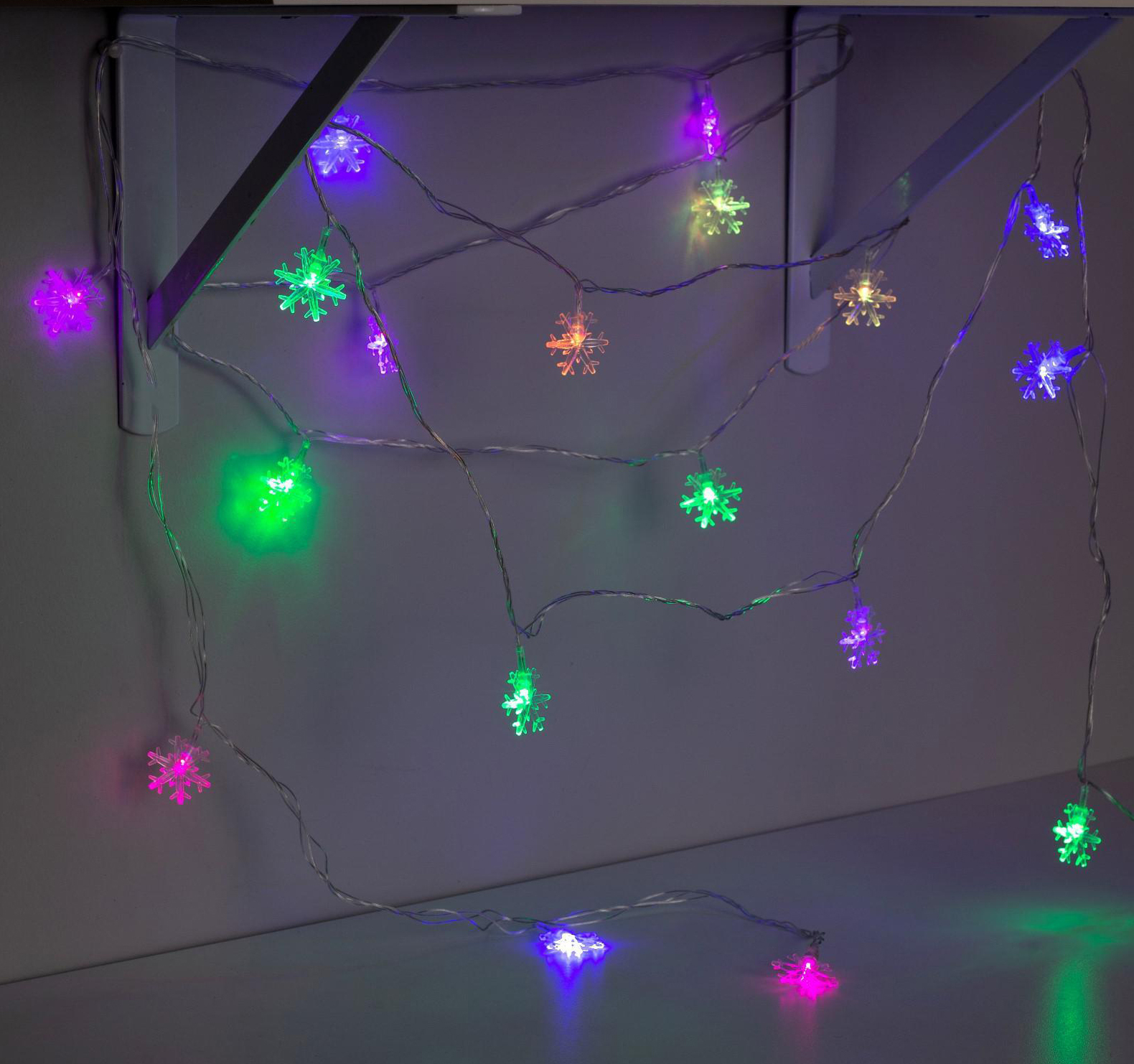 Электрогирлянда интерьерная Снежинки 20 ламп, 5 м, питание От сети 220В