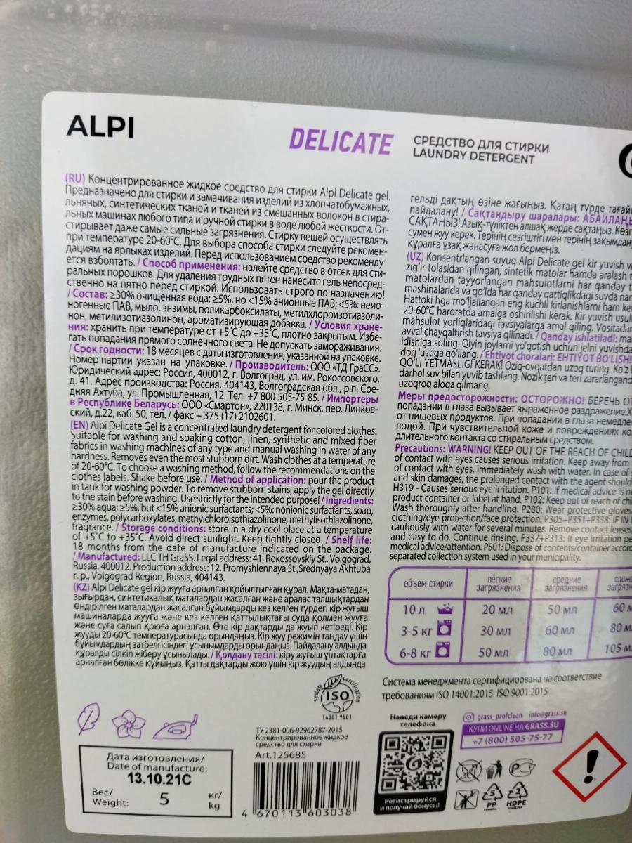 Гель для стирки белья Alpi GRASS Грасс 5 литров, гипоаллергенный жидкий порошок