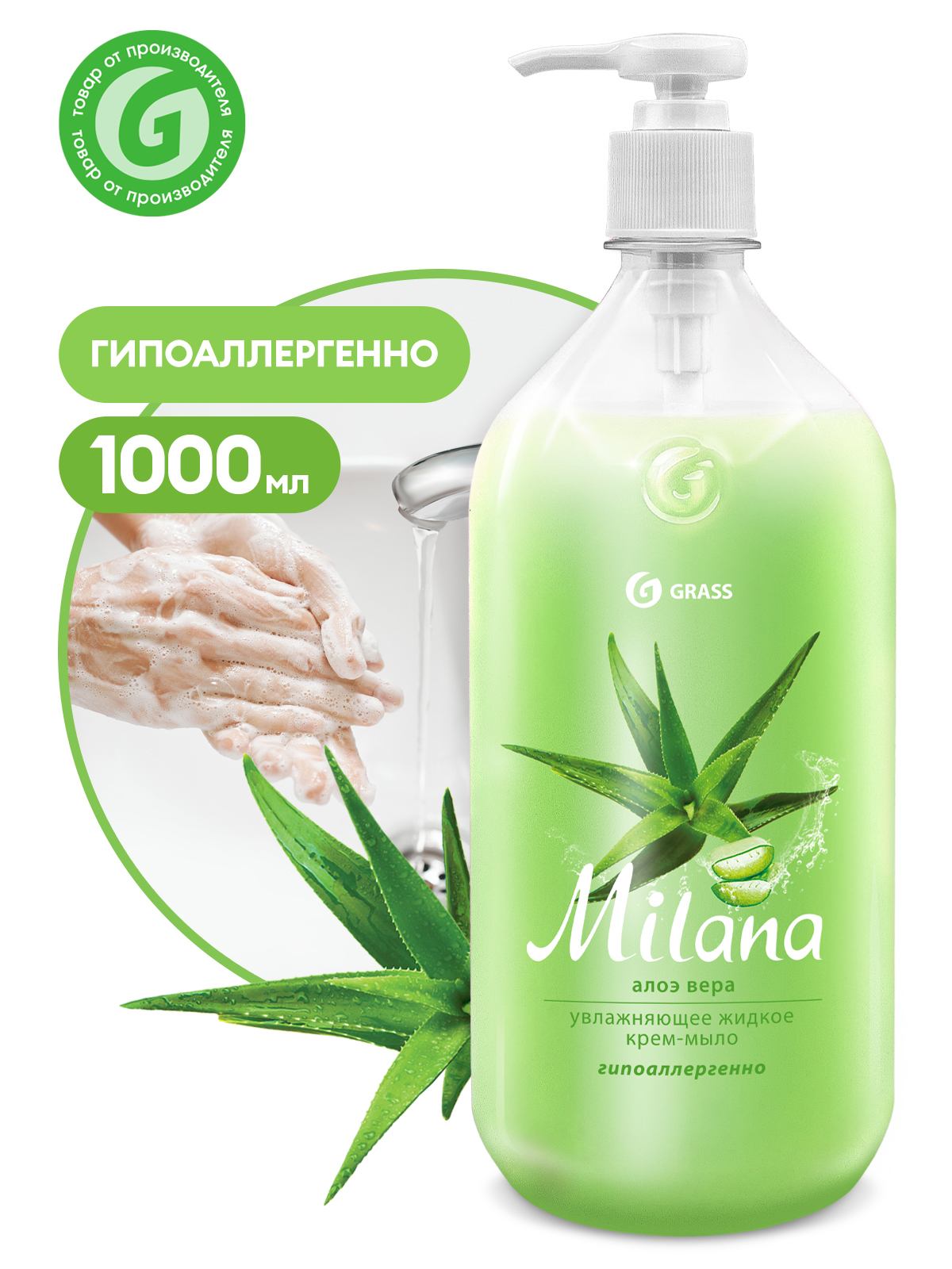 Жидкое крем мыло увлажняющее Milana Grass алоэ вера 1000 мл для рук тела кожи уход за руками