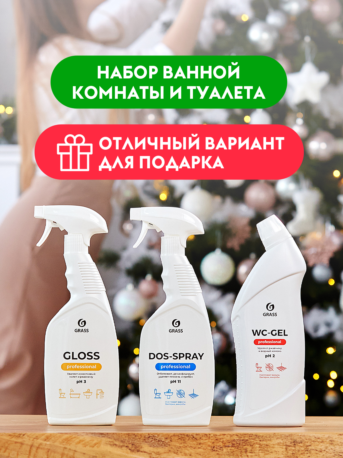 Чистящее средство для ванной и туалета Grass Gloss, универсальное моющее средство, Анти-Налёт, 600 мл (221600) x2