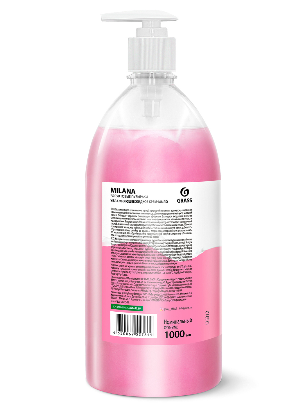 GRASS/ Жидкое крем-мыло для рук Grass Milana Fruit Bubbles, антибактериальное, с дозатором, 1000 мл.