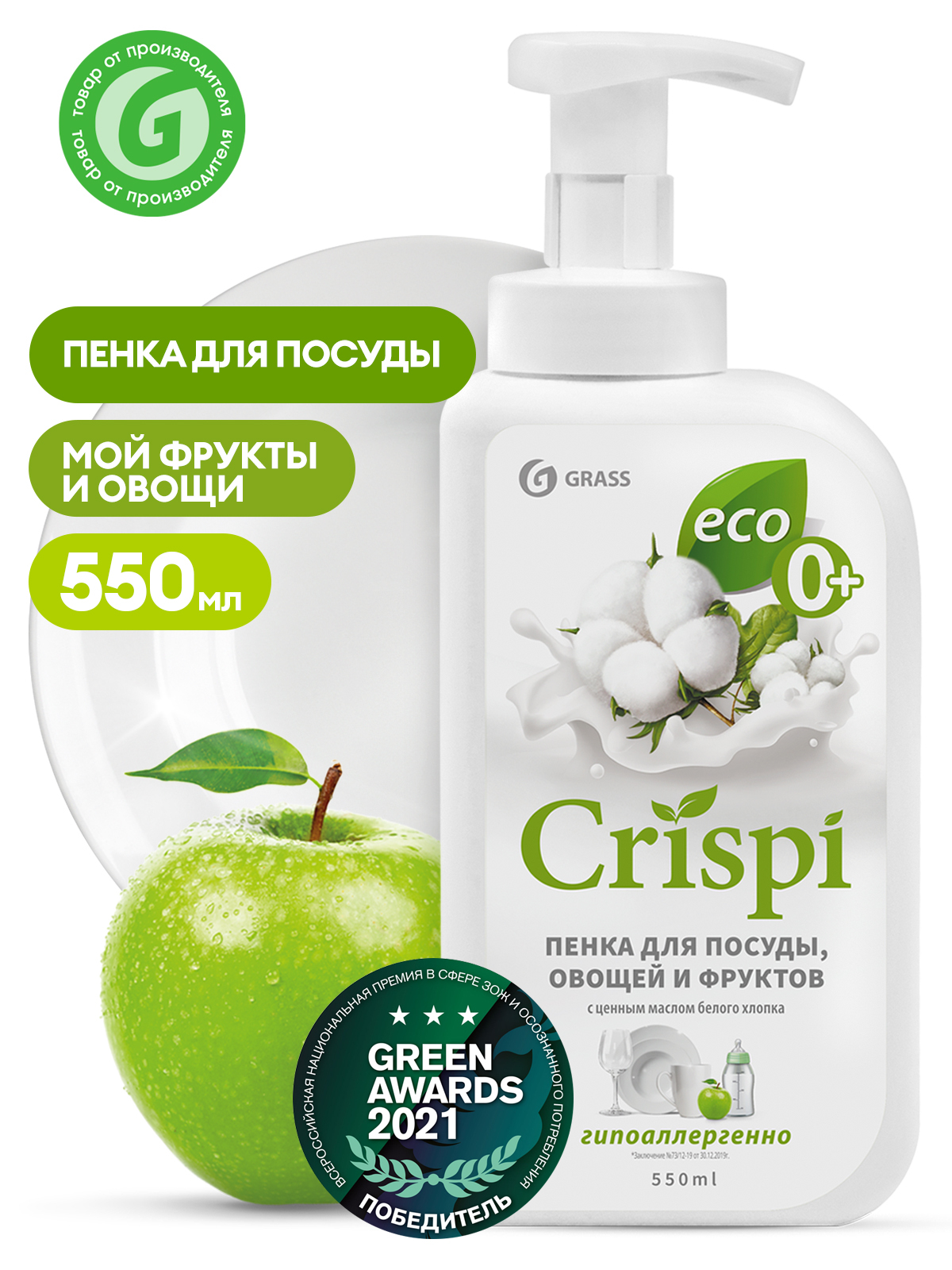 GRASS средство для мытья посуды ЭКО CRISPI ПЕНКА для мытья посуды хлопок ГраСС