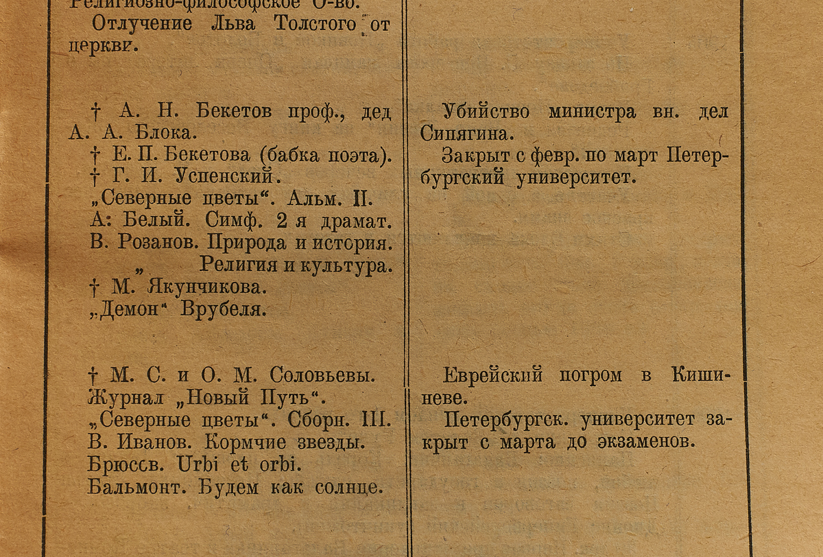 Александр Блок. Синхронистические таблицы жизни и творчества 1880-1921.