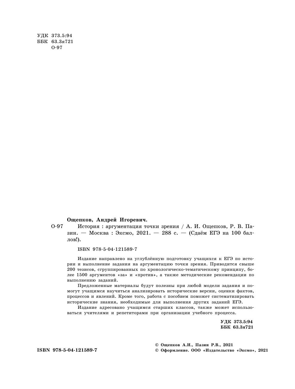 История. Аргументация точки зрения | Ощепков Андрей Игоревич, Пазин Роман Викторович